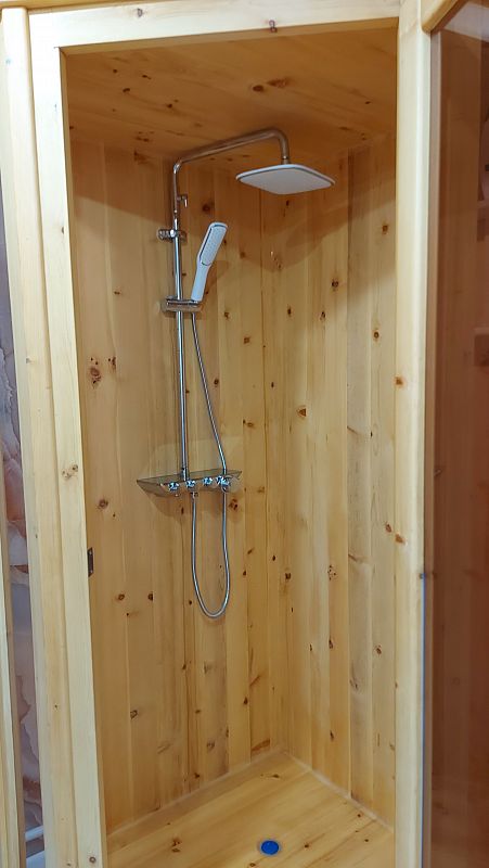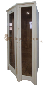 Угловая душевая кедровая кабина с бронзированной стеклянной дверью, может быть выполнена в ваших размерах и с вашими предпочтениями. Фасадные стенки по вашему выбору сделаем стекло или дерево. Кабина доставляется в разобранном виде, чтоб упрощает доставку и занос. Собирается по инструкции, всё необходимое есть в комплекте. Сантехника не входит в стоимость, но мы готовы подобрать бюджетный вариант и добавить в заказ. Кабина выполняется из массива кедра 40-45 мм щитами цельными, что делает её долговечной. Рекомендуем добавить покрытие внутри и снаружи. Наши душевые можно укомплектовать парогенератором с паропроводом и сделать внутри сиденье и полочки, что позволит её использовать еще и как паровую кабину (хаммам) для прогрева всего тела. Изделие собирается вручную мастером, возможны незначительные отличия от фото.